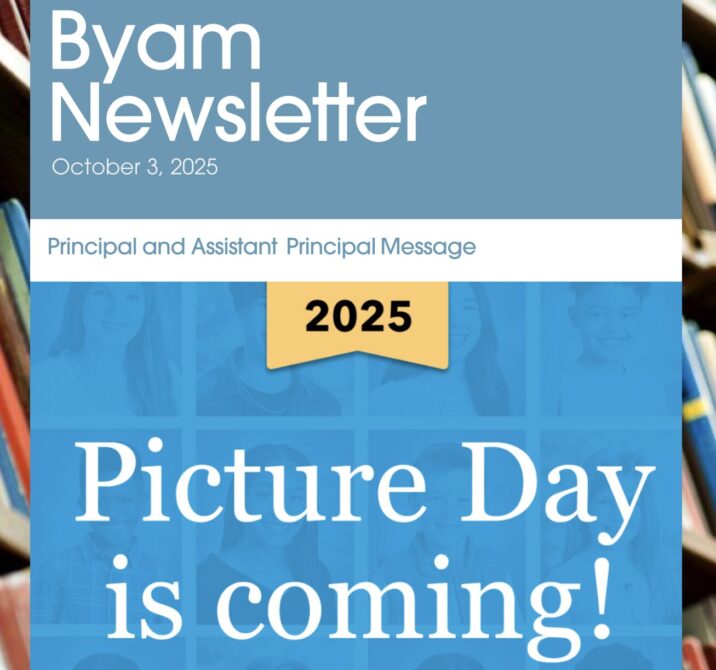 Byam Elementary School Newsletter: Oct. 3, 2025 Posted October 3rd, 2025 in Newsletters Byam Elementary School Newsletter Back Issues 2025-26 Oct. 3, 2025 Sept. 26, 2025 Sept. 19, 2025 Sept. 12, 2025 Sept. 5, 2025 Aug. 28, 2025 Aug. 19, 2025 July 30, 2025