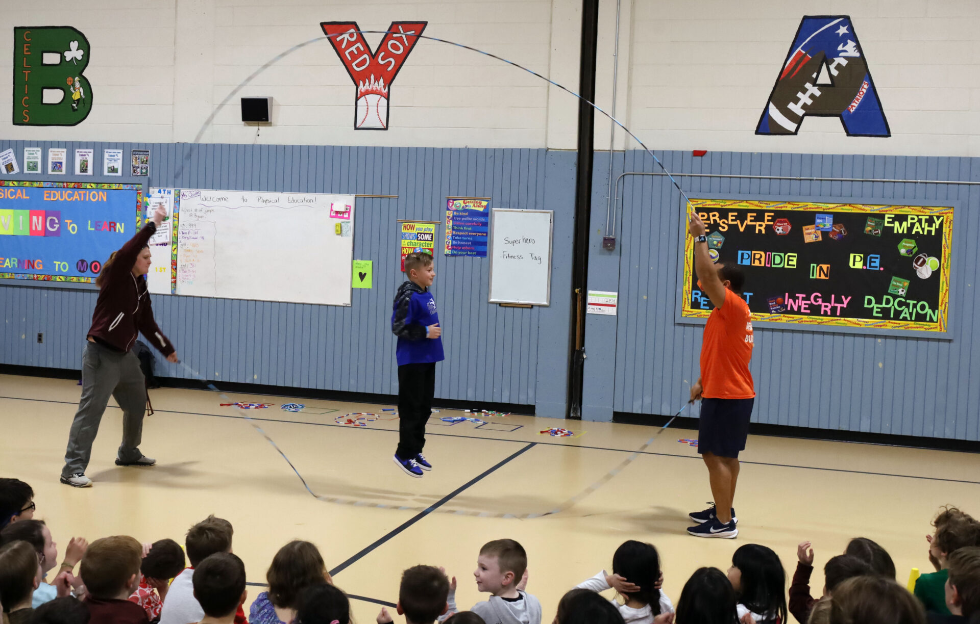 Nick Woodard of Learnin’ the Ropes paid several Chelmsford schools a visit on Wednesday, Feb. 5, bringing his energetic jump rope assembly to Byam Elementary, South Row Elementary and Parker Middle Schools.